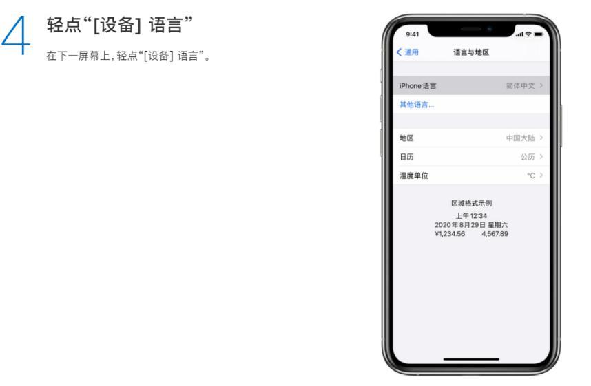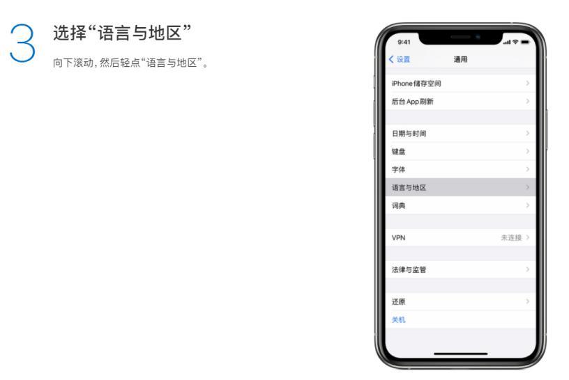 2.在苹果手机设置中,将地区修改为VPN连接线路的国家